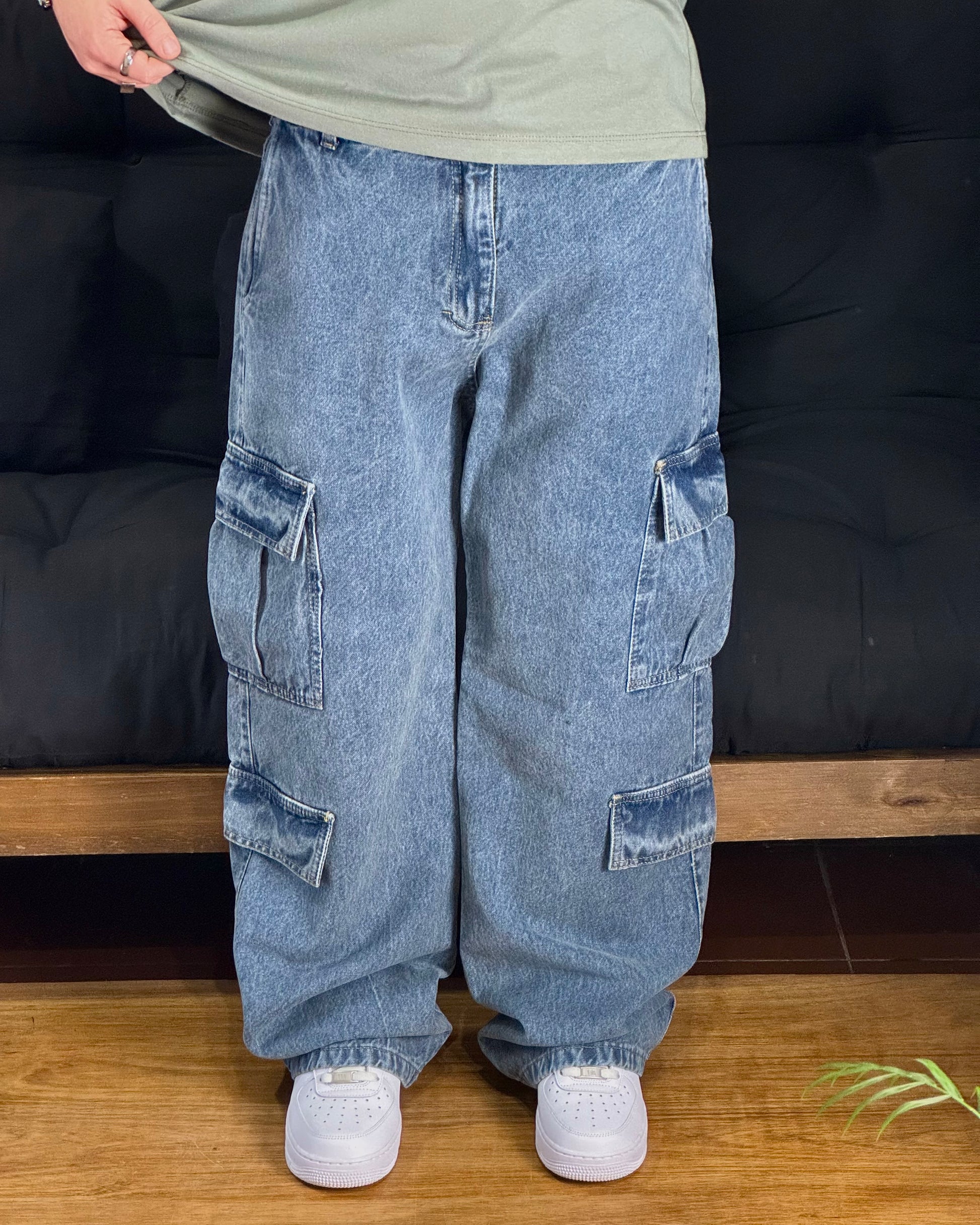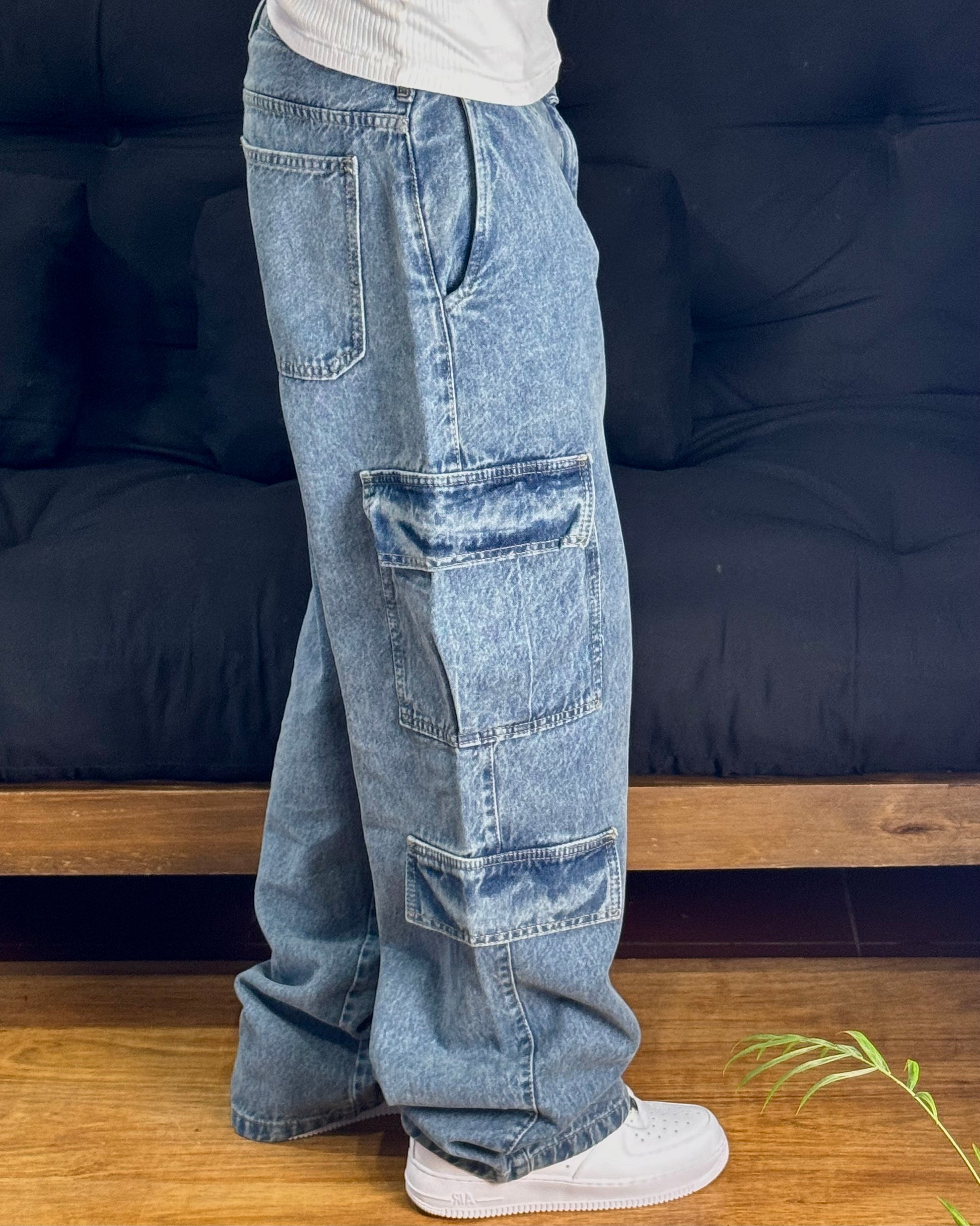 - Pantalon Cargo en color azul gastado.