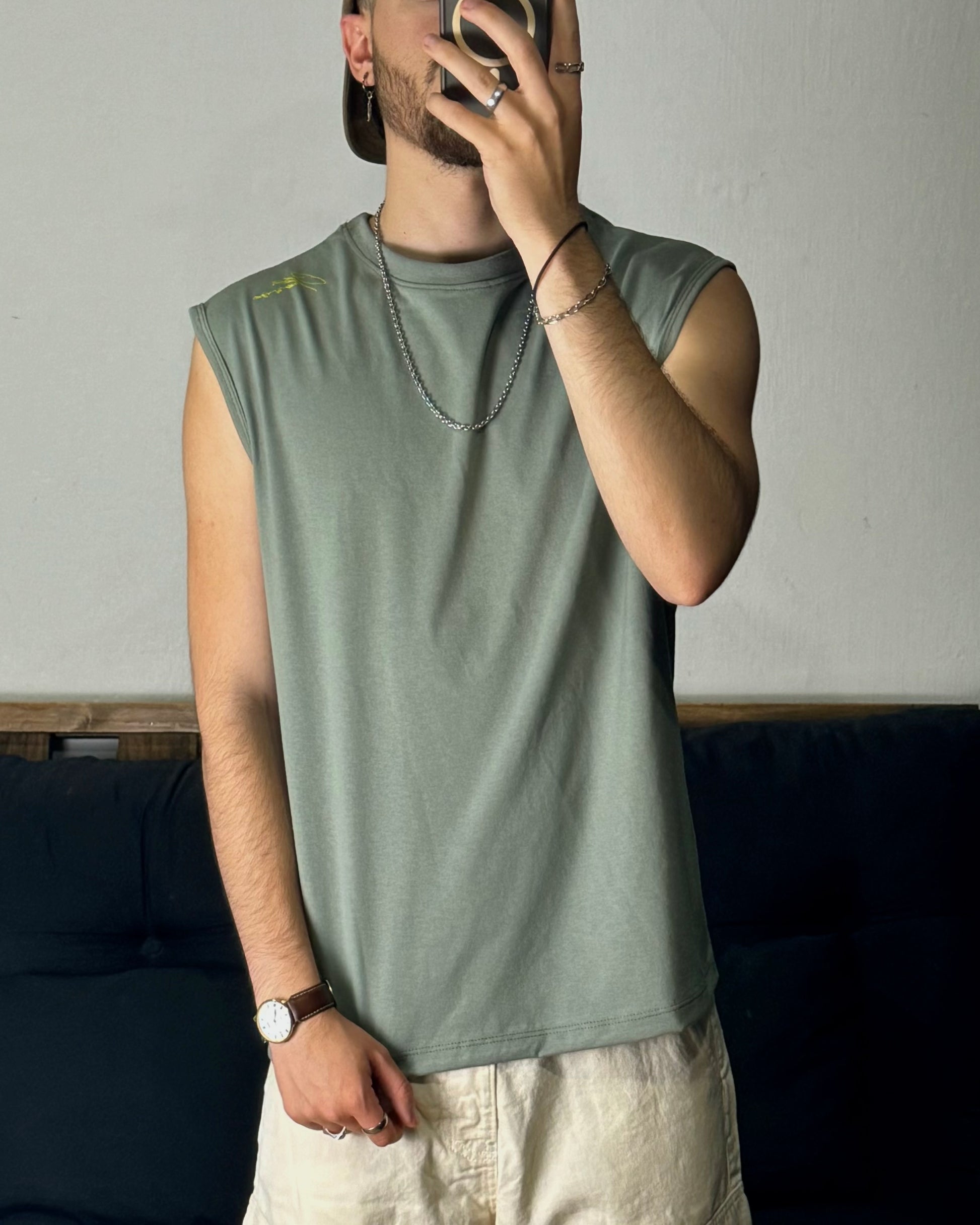 Musculosa en color verde claro con un corte y diseño único. Utilizando lo mejor del oversize y el boxy fit, logramos una prenda con el ancho y el largo perfecto!